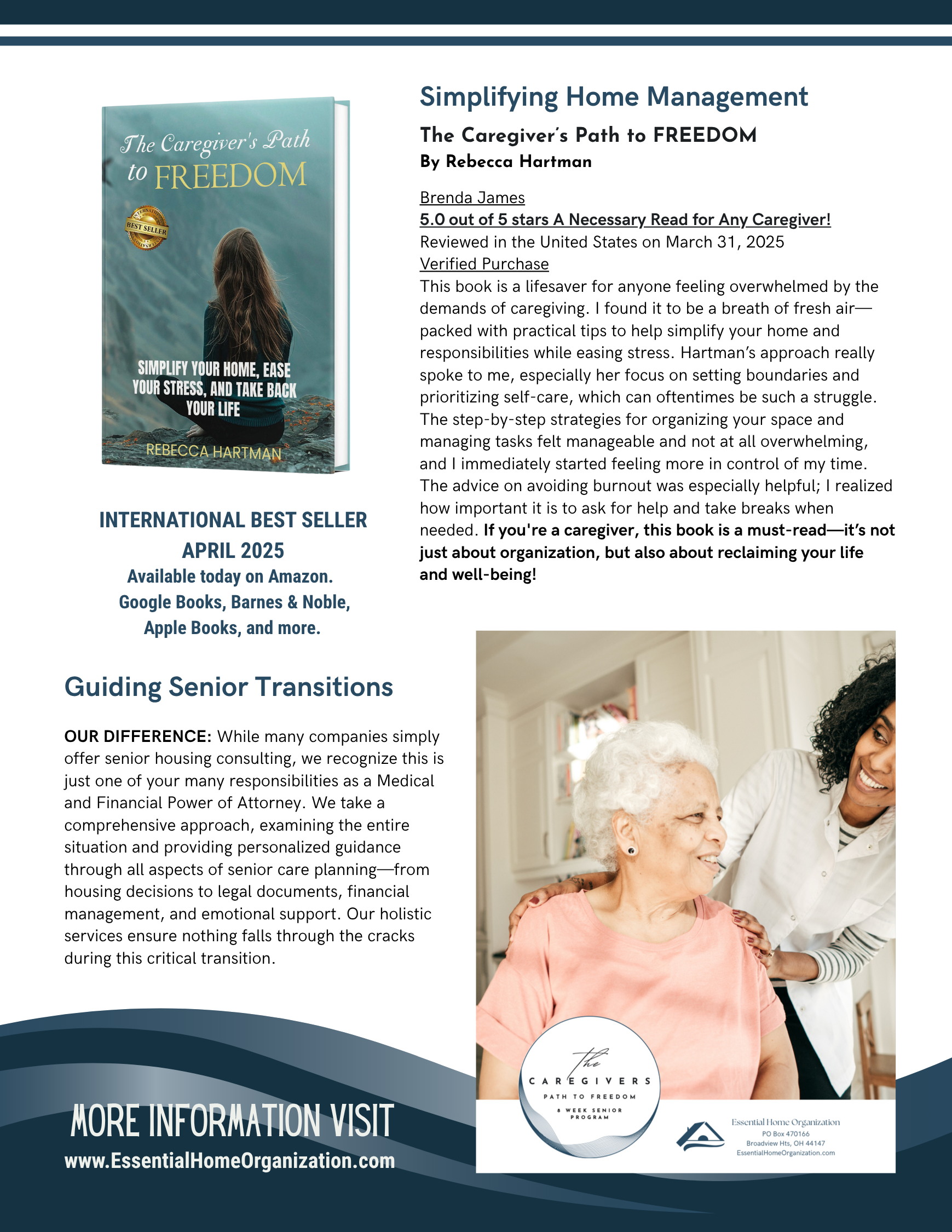 📘 The Caregiver's Path to Freedom (paperback book): A compassionate, step-by-step guide to simplify household and care responsibilities.